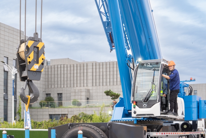 360°環視系統可識別行人并自動切換視角,大幅減少盲區;軸荷監測系統實現超載超速主動預警;底盤支車智能系統支持上車直接操控,有效提升作業效率。帶載伸縮、一鍵伸臂、可變支撐等創新功能,顯著增強了設備在復雜工況下的適應性與微動操控性,使狹小場地作業更加從容安全。