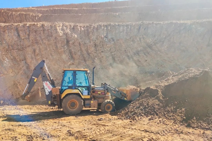 南美某磷礦客戶施工現場,徐工XC870K挖掘裝載機正熱火朝天地進行礦石、土方轉運,施工道路清理等輔助開采工作,助力客戶生產指標高效達成。
