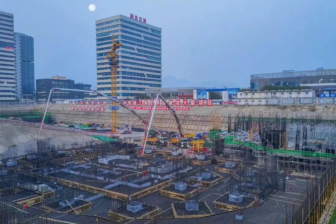 作為超高層建筑,融發大廈項目施工難點遠遠高于普通房建項目,建設過程中面臨深基坑施工、大體積混凝土施工、高強混凝土施工、超高泵送等多項泵送難題,十分考驗泵車穩定性、可靠性和工作效率。