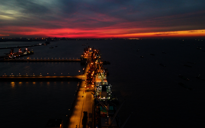 夜晚的羅涇港,汽笛依然轟鳴,天空更加璀璨,礦卡業(yè)已遠(yuǎn)行。