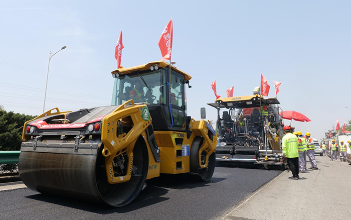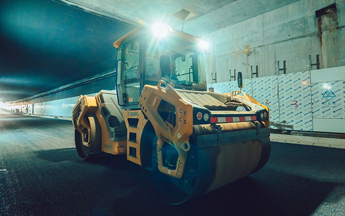 某隧道數字化智能施工是國內首次在城市地下長隧道中進行無人攤鋪、壓實新工藝應用。擔任壓實工作的也正是徐工XD135TIV壓路機,在狹窄的作業空間內展現出強大的施工能力。它的起步平緩和停車平穩的設計,有效避免了路面堆料和擁包現象,確保了每一段路面的高質量壓實,節省了大量時間和成本。