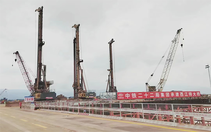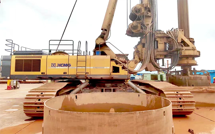 在深水基礎施工中,徐工采用創新的鋼護筒加超大旋挖鉆施工方法,確保一次性成孔,大大提升了施工效率。