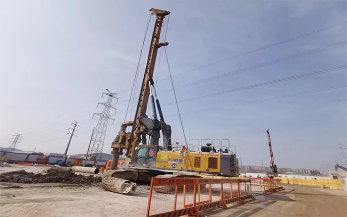 徐州地層有灰巖,硬度80Mpa以上。施工環境復雜,地質條件多變,徐工旋挖鉆機首當其沖,干勁十足!