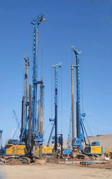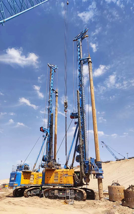 客戶共采購(gòu)4臺(tái)徐工大噸位旋挖鉆機(jī),主要進(jìn)行 NEOM新城地下車庫(kù)與輕軌項(xiàng)目施工。施工樁60-90m、樁徑2-2.5m、施工深度200m,面對(duì)沙土地質(zhì),徐工旋挖鉆機(jī)游刃有余,平均每天完成3根樁的施工。