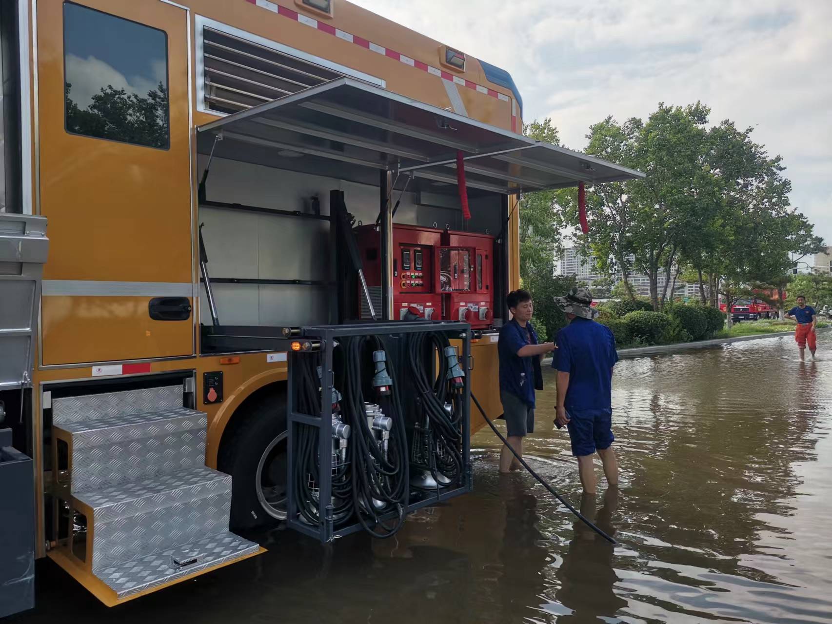 7月中旬,河南省普降大到暴雨,降雨時間長、強度大、影響廣,多市發(fā)布暴雨Ⅰ級預警,人民生命財產安全面臨巨大威脅。接到有關單位緊急通知后,徐工迅速集結車輛人員,出動PS40B泵組式排水搶險車,攜帶足量隨車器材,連夜動身前往河南商丘,火速開展救援。