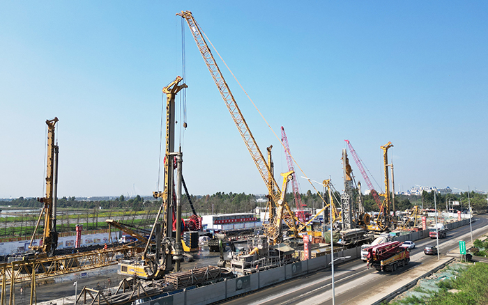 徐工旋挖鉆機、連續墻液壓抓斗、雙輪銑等基礎工程施工成套化設備集結出擊,參與建設南沙至珠海(中山)城際萬頃沙至興中段(以下簡稱“南珠中城際”)項目,助力中山邁進大灣區軌道交通新時代。