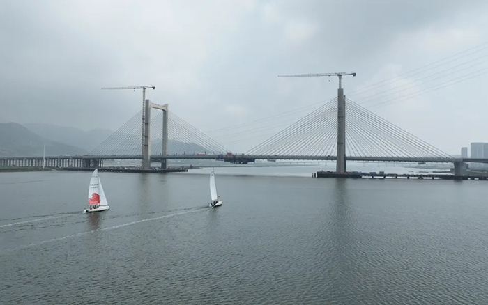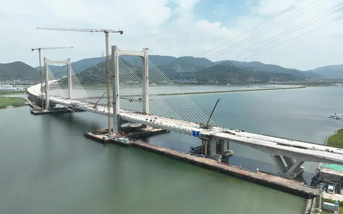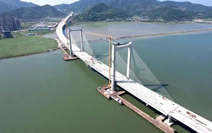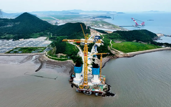六橫公路大橋一期工程主要為陸上高速公路接線及疏港公路工程,作為一期工程關鍵施工節點——梅山水道橋,在6臺徐工塔機的全力協作下,大橋邊跨順利合龍。