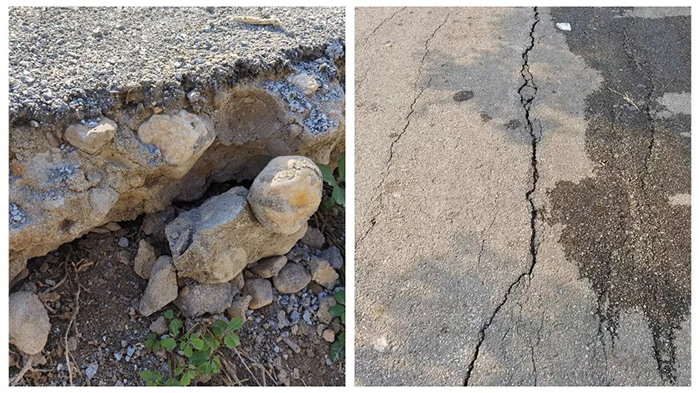 該路段由20cm水穩砂基層+4cm瀝青混凝土面層組成,面層出現了大量的開裂、車轍、沉陷等病害,損壞嚴重,前期養護都是對路面損壞處進行局部處理。