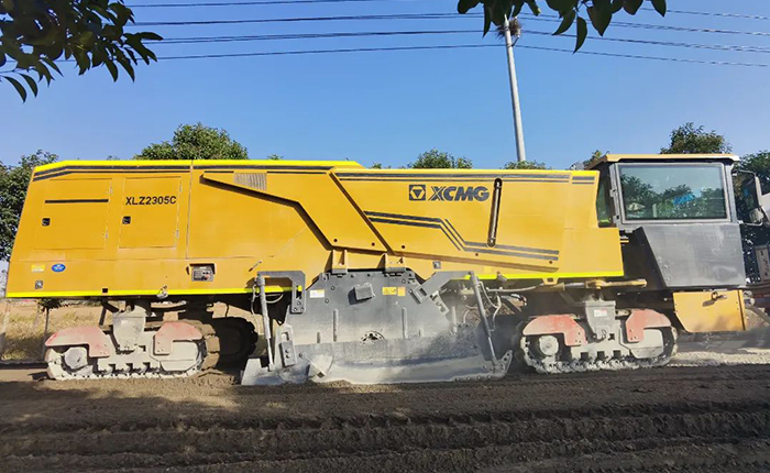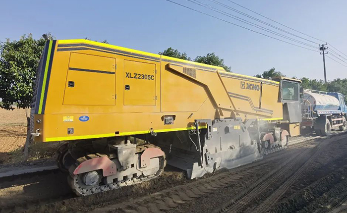 徐工XLZ2305C路面冷再生機憑借強勁可靠的銑刨系統、高效節能的動力系統、多級可調的顆粒度控制以及精確均勻的智能噴灑等優勢,在本次縣道改建項目中承擔路面再生工序施工。