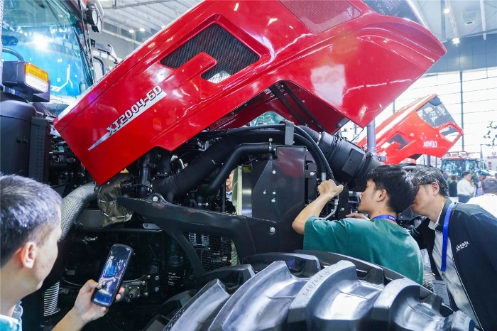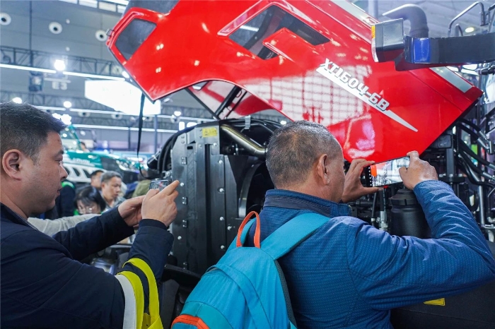 此次為徐工首次參加農(nóng)機(jī)展。展會(huì)現(xiàn)場(chǎng),來(lái)自全國(guó)各地的用戶、經(jīng)銷商、農(nóng)機(jī)愛好者匯聚一堂,共話農(nóng)機(jī)行業(yè)新技術(shù)、新趨勢(shì)、新機(jī)遇。徐工展區(qū)內(nèi),人頭攢動(dòng),凝聚徐工農(nóng)機(jī)人智慧與匠心的五款明星產(chǎn)品閃耀登場(chǎng),吸引了眾多客戶及合作伙伴熱情咨詢、現(xiàn)場(chǎng)商談,全方位展示了“高技術(shù)、高質(zhì)量、高性價(jià)比”大型化、成套化產(chǎn)品的風(fēng)采。