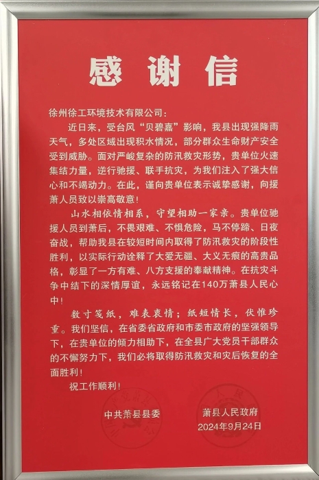 @徐工排澇搶險隊,您有一份來自蕭縣的感謝!