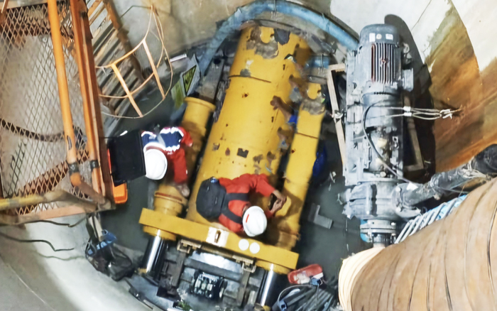 為解決干巖石地層粘泥導(dǎo)致的刀盤(pán)堵塞、設(shè)備排泥不暢等問(wèn)題,徐工技術(shù)人員結(jié)合當(dāng)?shù)氐刭|(zhì)條件,在頂進(jìn)設(shè)備中創(chuàng)新性研發(fā)了直排功能,有效應(yīng)對(duì)復(fù)雜地質(zhì)條件,確保項(xiàng)目高效如期完工。