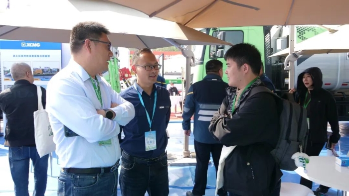 徐工新能源產(chǎn)品在展會的精彩亮相,吸引了大批來賓前往參觀咨詢。徐工環(huán)境相關(guān)領(lǐng)導陪同協(xié)會會長陳永生一行在徐工展位參觀交流,向其詳細介紹了徐工參展的新產(chǎn)品的特色亮點及產(chǎn)品優(yōu)勢,并表示徐工將不斷推進新能源產(chǎn)品技術(shù)研發(fā),用更多優(yōu)質(zhì)產(chǎn)品搶占高端市場,全面推進產(chǎn)業(yè)高端化、智能化、綠色化、服務(wù)化、國際化“五化”轉(zhuǎn)型升級。