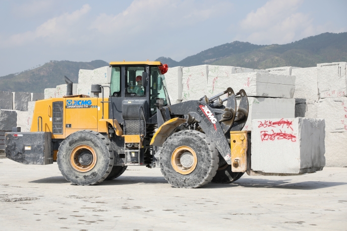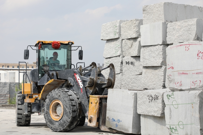 高檔花崗巖石材,以其優美的外觀、堅硬的質地,一直是公共設施外立面裝飾的首選。客戶用的這臺徐工LW500KV(GIV)-T18石材叉裝機已在石材加工廠使用兩年,“相比過去用的車,操控輕松方便,視野很開闊,在復雜工作環境下也非常穩定可靠,干活效率高。”駕駛員對徐工石材叉裝機贊賞有加。