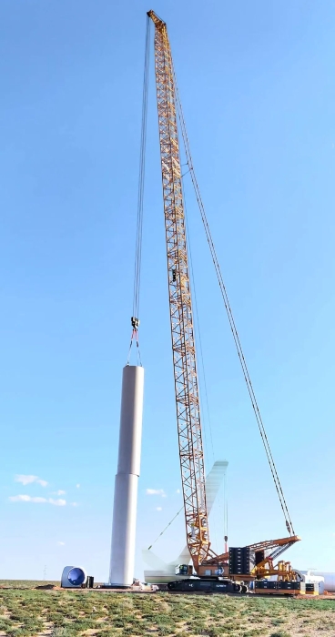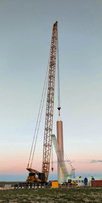 • 2025年3月,于河北山地以198+8m超起工況完成首臺7.5MW機組吊裝;