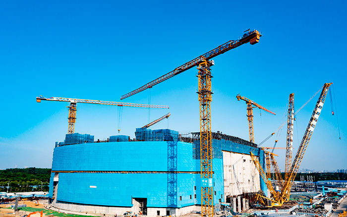 在合肥未來大科學城的核心區域,多臺徐工XGT800-40S、XGT600-25S正在系湊型聚變能實驗裝置園區(BEST)項目上火熱施工。