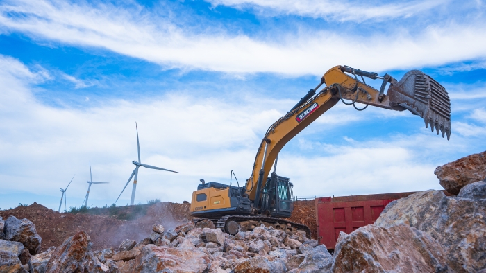 湖北宜城礦區深處,白云巖資源富集,開采作業正酣。徐工XE500GK液壓挖掘機以主力姿態投身于繁忙的開采隊伍當中,以卓越性能與可靠品質,贏得施工方高度認可,成為這片堅硬巖層中名副其實的“掘金巨無霸”。