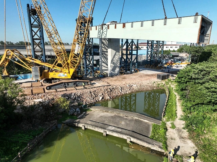 近日,徐工XGC11000(650噸級(jí))履帶起重機(jī)現(xiàn)身上海沿江通道施工現(xiàn)場(chǎng),將11段大型預(yù)制節(jié)段梁平穩(wěn)安裝就位,助力項(xiàng)目關(guān)鍵節(jié)點(diǎn)高效推進(jìn)。