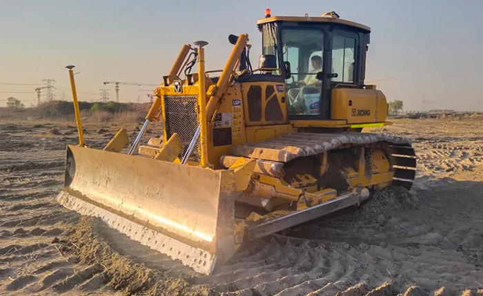 在路基填方平整作業中,徐工推土機鏟刀引導系統以雙天線GNSS技術實現厘米級鏟刀高程精準定位,結合定高定坡一鍵設定功能,高效完成分層填筑路基土方、在坡度超過1:5的斜坡或溝渠區域,配合開挖臺階、回填土方,并鋪設土工格柵等任務。即開即用的高性價比優勢,大幅降低測量人力與燃油消耗,推動施工效率與質量雙提升。