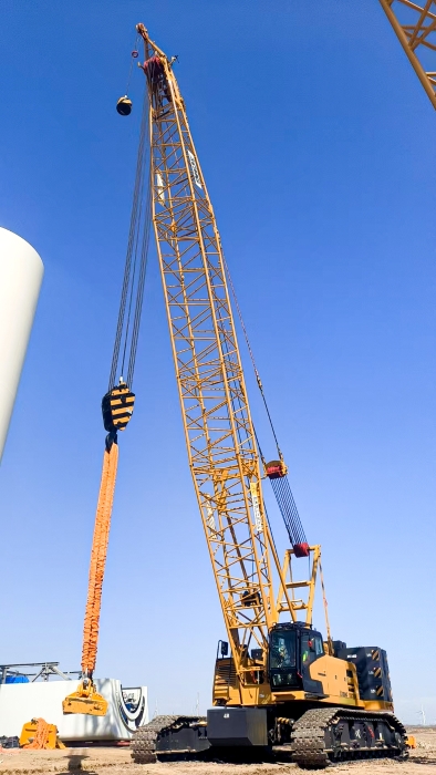 近日,在我國西北某風(fēng)電場(chǎng),徐工XLC15000(1000噸級(jí))履帶起重機(jī),以132+12米標(biāo)準(zhǔn)風(fēng)電工況,精準(zhǔn)將重達(dá)34噸的風(fēng)機(jī)葉片平穩(wěn)吊裝至百米高空,圓滿完成10兆瓦風(fēng)機(jī)吊裝任務(wù)。