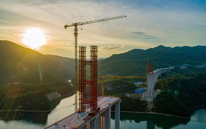 項目位于貴州鳳岡、石阡、思南三縣交界處,該區域地質條件復雜、天氣多變、空氣潮濕,嚴重影響項目施工進度。徐工塔機憑借著高效、安全、可靠的產品性能完美適應施工現場環境,為大橋高質量、高安全、高效率施工提供有力保障,為德余高速公路建設按下“快進鍵”。